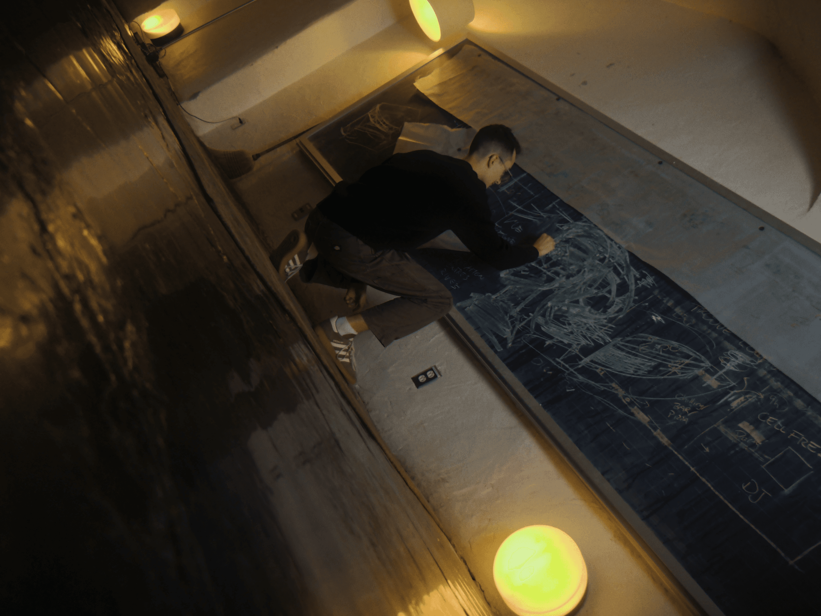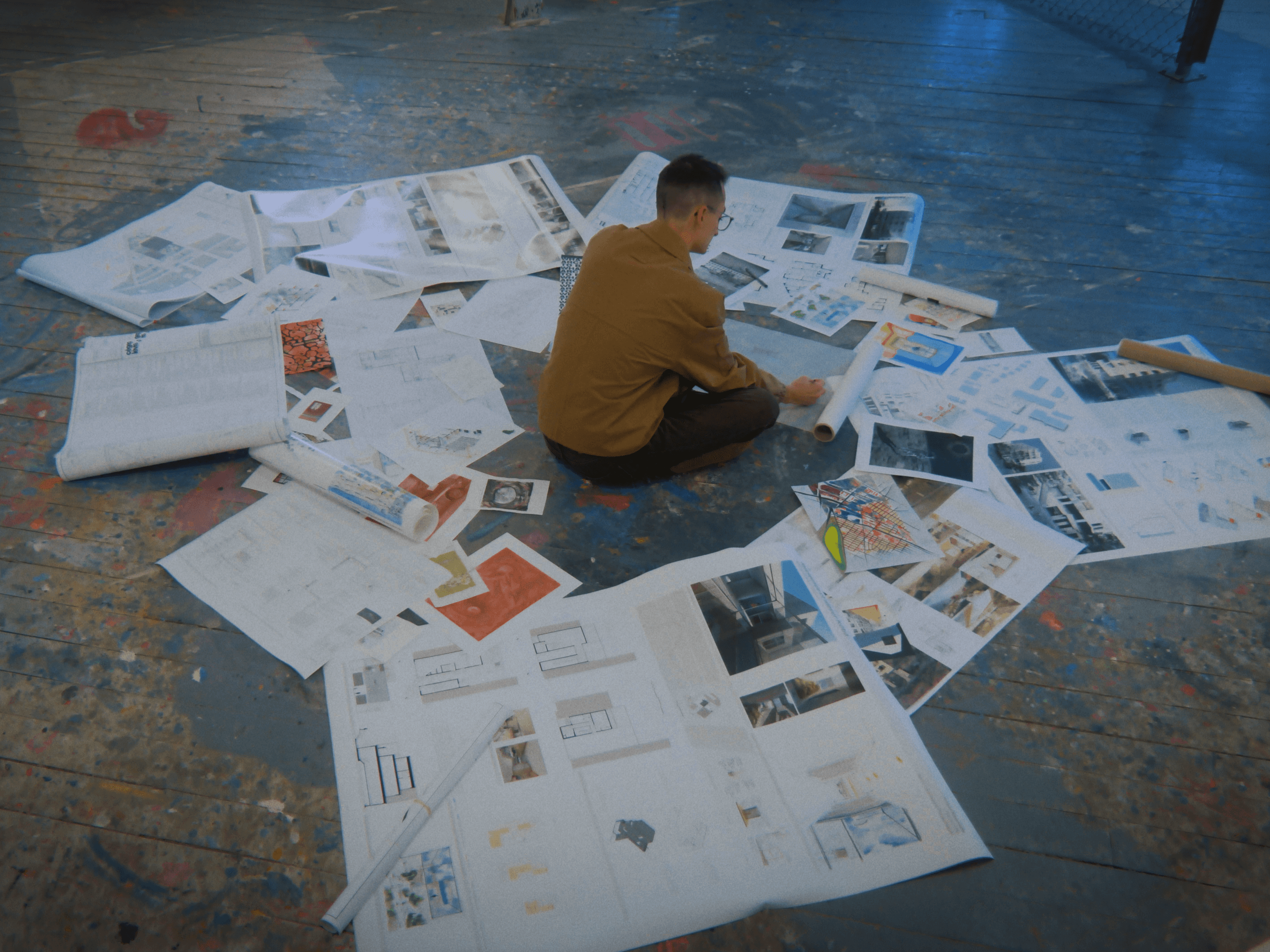 Contextualisé dans des univers physiques artistiques, les prises d'images montrent un processus de création pour arriver à la matérialisation d'une idée. L'architecture se montre alors comme un pilier dans le cheminement de la pratique.